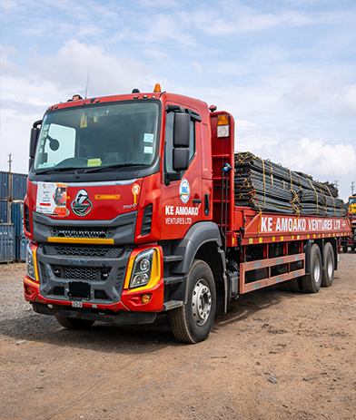 KE Amoako Ventures LTD is a leading transport, haulage, and logistics company operating across Ghana and West Africa. With years of industry experience, we specialize in delivering steel products, container cargo, and bulk commodities safely and efficiently. Our modern fleet and skilled logistics team ensure reliable service tailored to every client’s unique requirements.